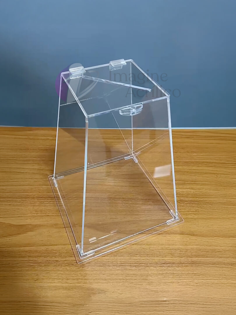 Além disso, a Imagine Acrílico realiza produção sob medida, podendo personalizar sua urna em acrílico com adesivos, gravações ou logomarcas, tornando-a única e alinhada à identidade visual da sua marca.